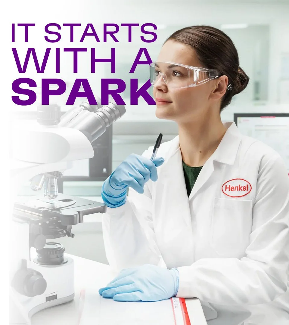 Henkel Spark is an associated-brand identity we developed for the global powerhouse Henkel, specifically for their innovation department. Commissioned through innovation consultancy Co:cubed, the project required us to create a distinctive visual identity that could energise and differentiate Spark while remaining firmly rooted within Henkel’s established brand architecture. The result is a bold, future-facing identity that reflects the spirit of experimentation and collaboration at the heart of Henkel’s innovation initiatives.